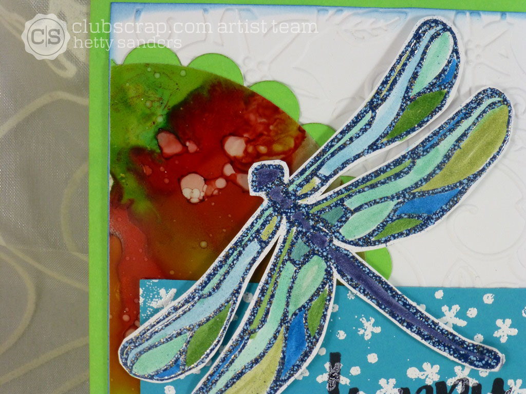 The dragonfly is embossed with dark blue embossing